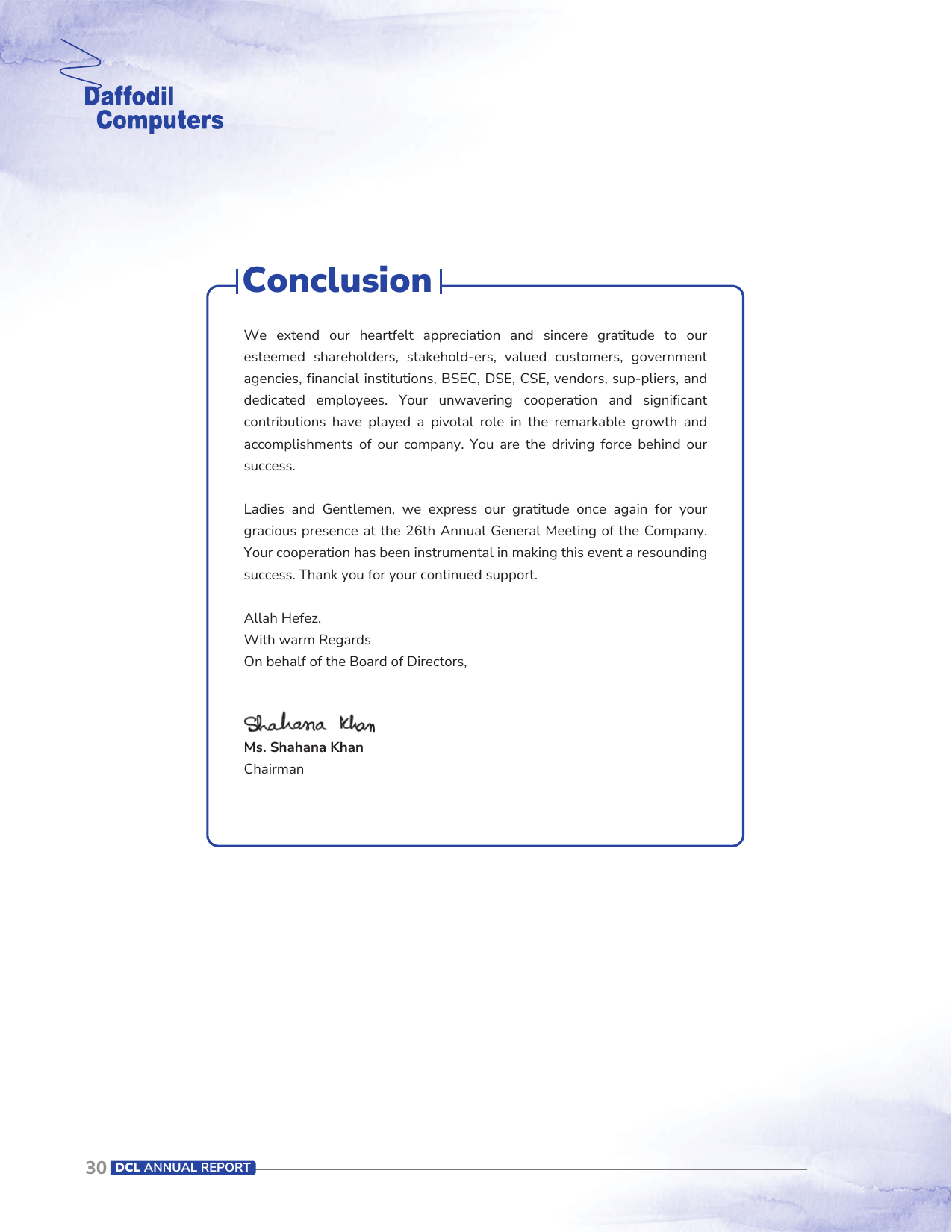 Message of the Chairman